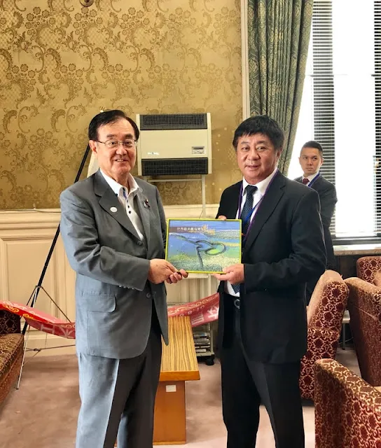 陳雙全副議長特地準備『澎湖最美麗海灣』書冊贈予眾議員,並透過翻譯向眾議員介紹二戰時代在澎湖遺留的軍備設施遺址,包括西嶼鄉赤馬村的銅牆鐵壁五孔頂砲台,以及傳說中虎井的戰爭指揮部遺址等。並進一步介紹澎湖獨有的天然美景與豐富的海洋資源,饒富多元的文化風貌與當地美食,極力向眾議員行銷澎湖之美,希望能夠帶動日本來澎旅遊的風氣。