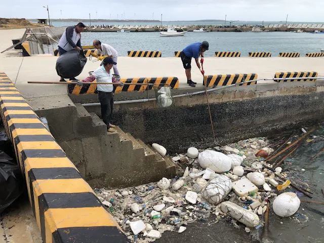 澎湖幾乎一村一漁港,其中湖西鄉沙港村漁港就有3處,每年逢東北季風南下海漂垃圾、塑膠瓶及漂流木等大多聚集於沙港中漁港,為此,農漁局及安心上工人員於退潮時將廢棄保麗龍及漂流木一一由港域拿至岸上並配合清潔隊協助清運,讓漁港環境保持美觀,讓船隻停泊航行安全,並在此呼籲海漂垃圾除了「撿」還要更「減」,從源頭減少垃圾量,你我做的到,每個人小小的努力,大海會賜予我們更豐沛的資源,讓我們一起守護海洋。