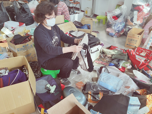 △志工媽媽正在進行物資準備,盼今年唯一一場次的跳蚤市場得順利進行。