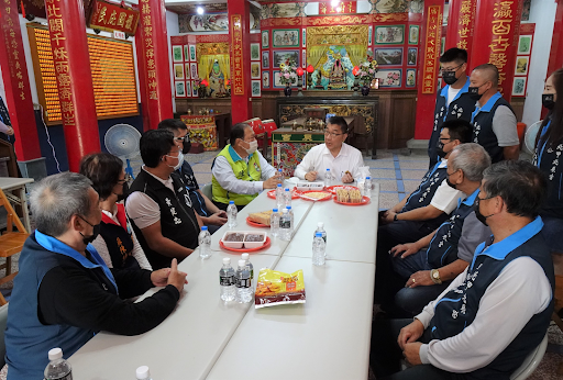 △內政部長徐國勇一行人舉辦了簡單的座談會在北甲北辰宮舉行。(嚴光澎攝)