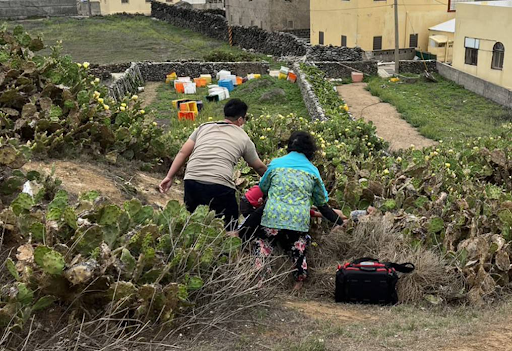 小門村長章娥聞訊隨即攜帶一把長柄鐮刀到場救援,西嶼消防分隊小隊長沈瑞中等救護人員獲報亦趕抵現場,眾人合力協助薛姓民眾脫困,發現薛男手腳多處遭仙人掌刺傷,尚有多支尖刺留置於手腳上,勤務人員遂小心將餘刺拔除並清洗傷口,事後患者婉拒送醫治療自行離去。