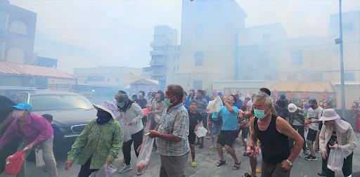 △理事長陳聰明接炸棗,象徵吉祥順利。(莊惠惠攝)