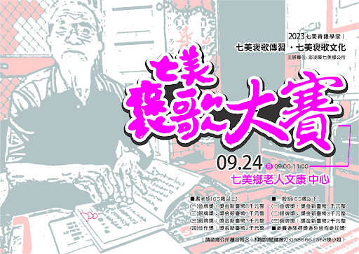 七美鄉公所表示,比賽褒唱主題:不限。比賽日期訂於112年9月24日(日) 早上9點假七美鄉老人文康中心;參賽者(A)耆老組及一般組-凡七美在地居民及在地七美旅外鄉親皆可報名參加比賽。(B)褒歌表演組3名-歡迎非七美設藉鄉親報名(需於活動前報名,以3名為限)。
