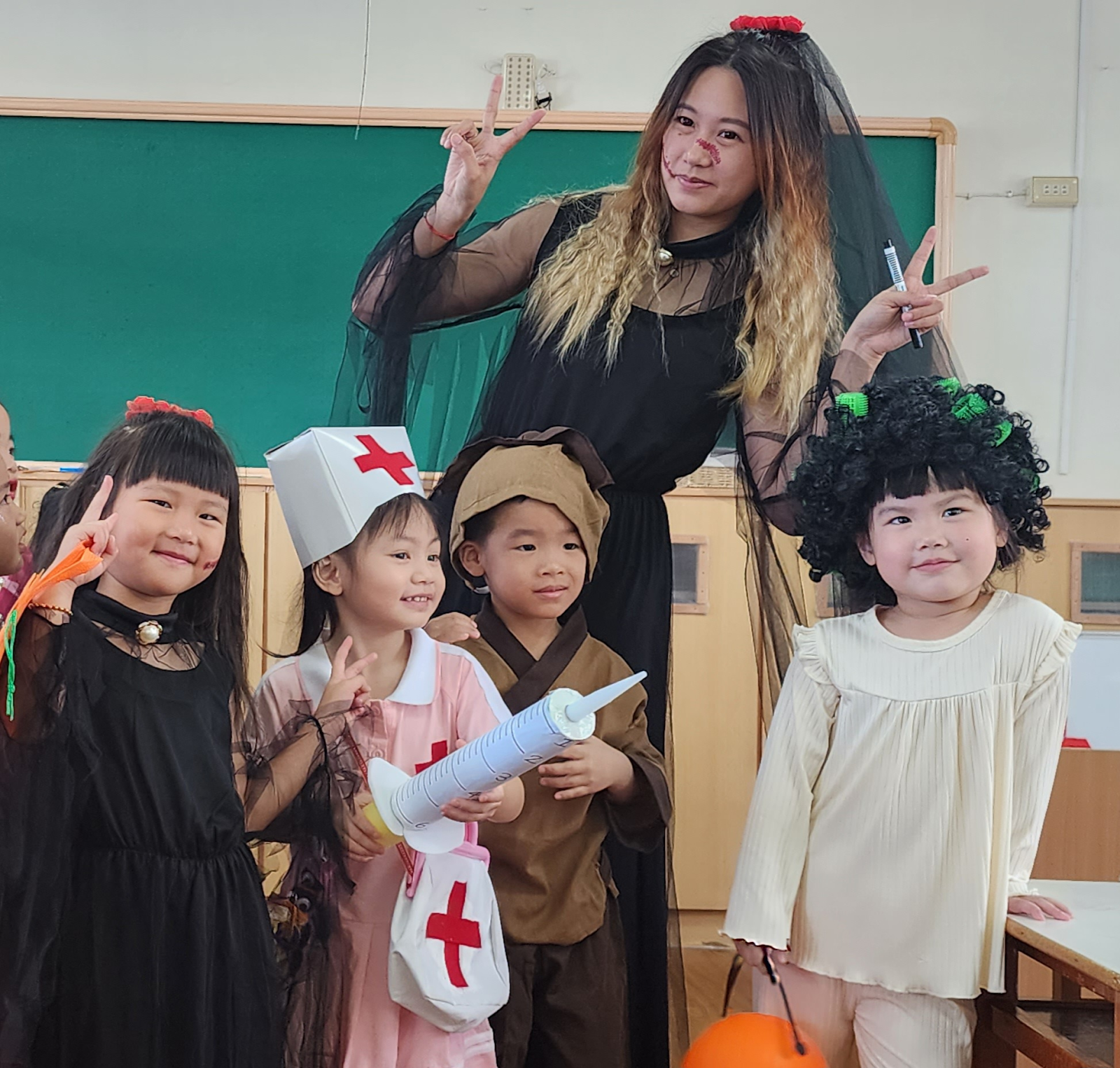 △迎接萬聖節,西嶼幼兒園變裝踩街秀。(莊惠惠攝)