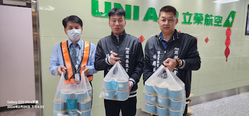 △陳毓仁贈慰問品,感謝航警人員及機場職員。