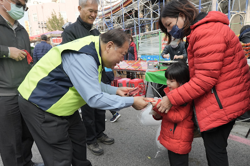 福袋發送過程中,陳光復展現親和力,與鄉親合影過新年,將滿滿祝福分送給鄉親及周邊攤飯,並期盼將好運氣分送給大家,為大家的新年帶來更多喜悅和財富。