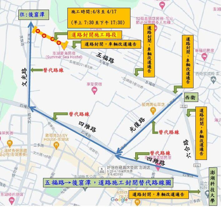 Home 時事新聞 配合本縣污水下水道施工 五福路4月8日起道路封閉公告