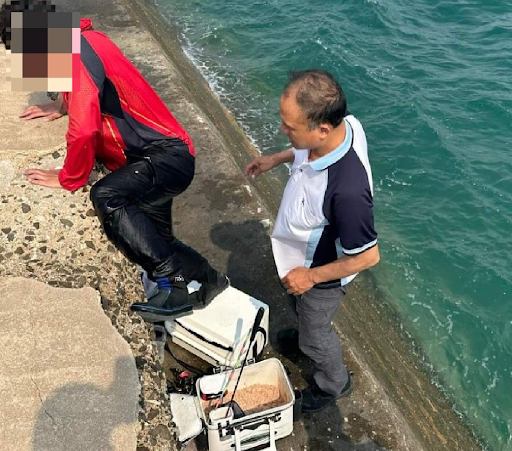 林所長見狀,說時遲,那時快,立即拋出一旁漁船的纜繩,精準套住釣客身體,並與曾員及一旁協助的民眾合力將釣客拉上防波堤,隨後檢查釣客的身體狀況,所幸只有些微擦傷不需就醫。該名釣客不斷對警方表達感謝之意,並稱讚警方的救護有如及時雨,避免一場可能發生的不幸事件。