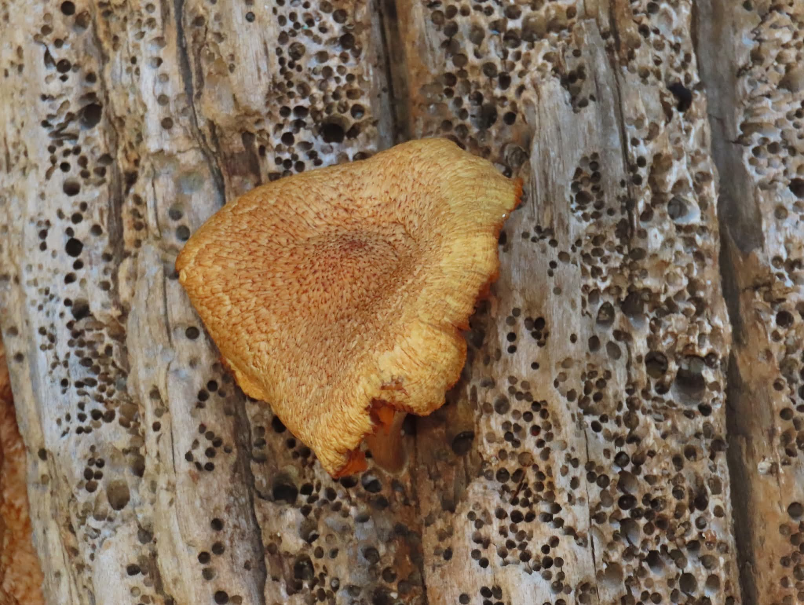 ▲民眾住家庭院木頭冒出香菇。 (顏東星提供)